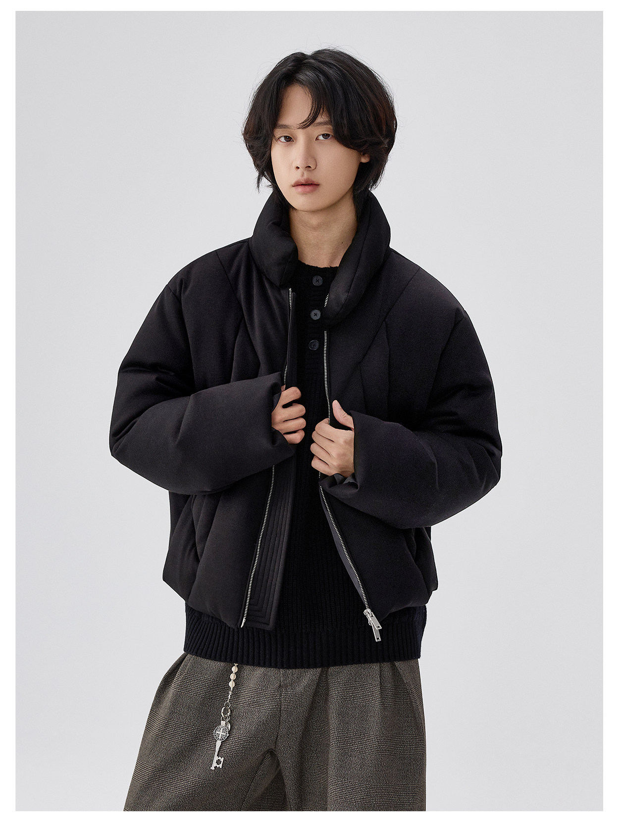 Collar Style: Stand-up collar without hood
