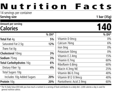 - 140 calories per bar