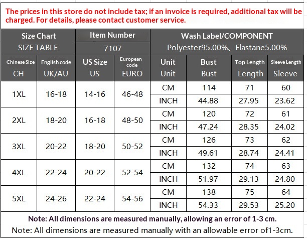 Size: 1XL, 2XL, 3XL, 4XL, 5XL